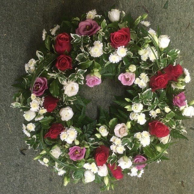 Red, pink and white wreath